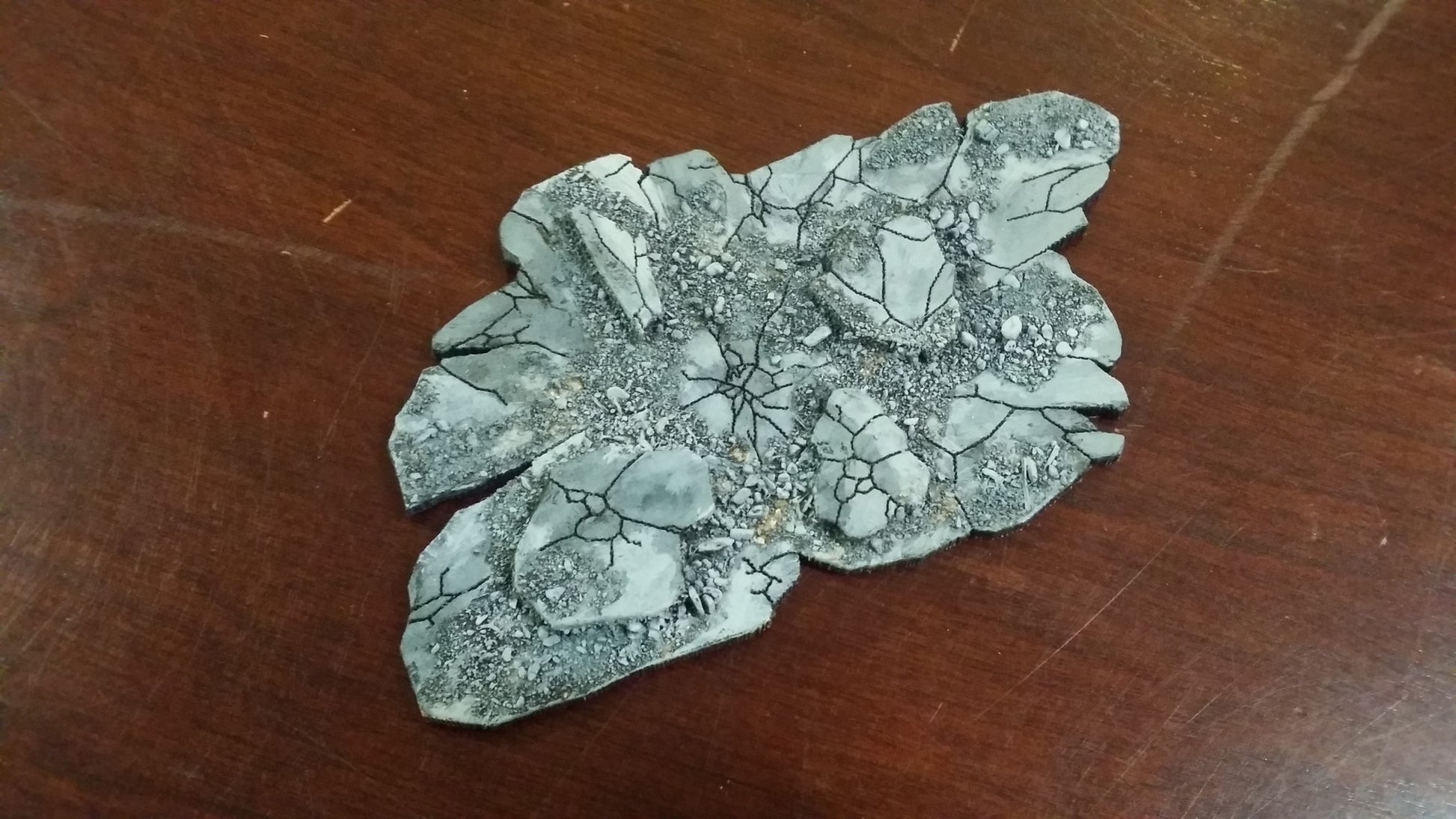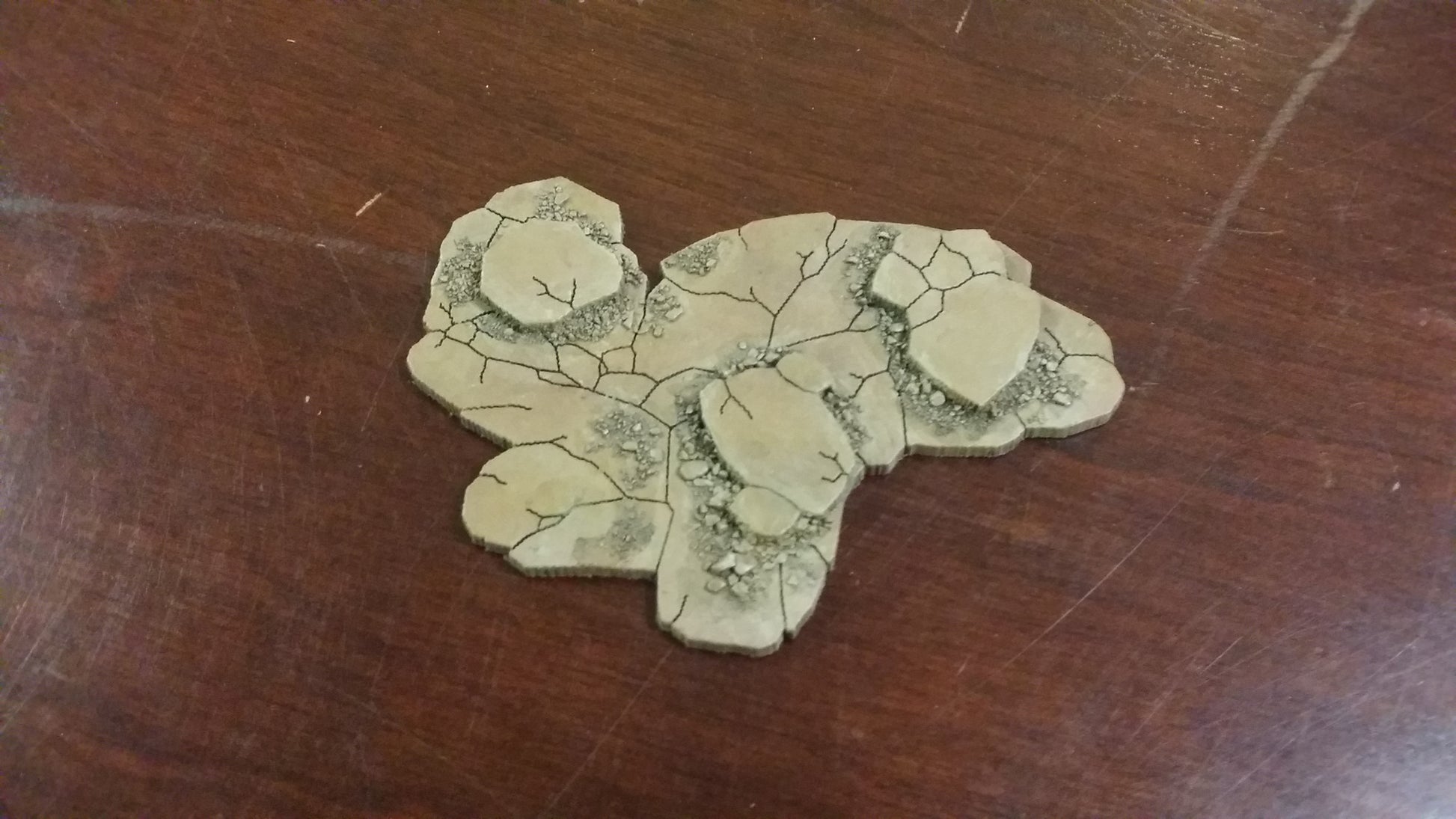 This set of broken and battered earth is perfect for denoting rough terrain on your sci fi, fantasy, or steampunk battlefields. It includes all 3 shapes with a variety of cracked and broken shards of rock to build up into rough terrain while building up to less than a quarter inch tall- saving your models from falling over and breaking or chiping paint.